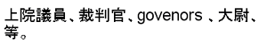 honorable titles: senators, judges, govenors, captains, etc.![]() |